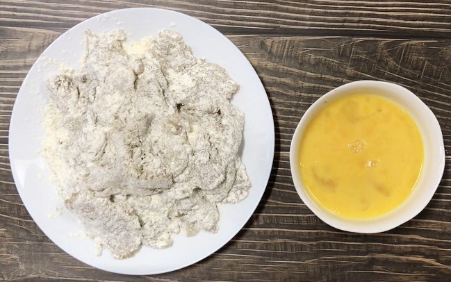 부침가루 묻힌 동태포와 달걀물 재료준비 완료!
