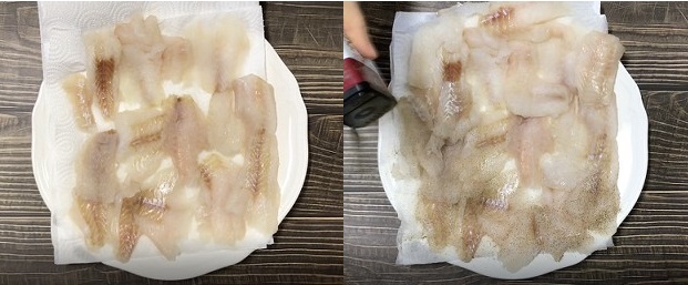 1. 해동된 동태포는 키친타월로 물기를 닦고 소금과 후추를 골고루 뿌려주고,