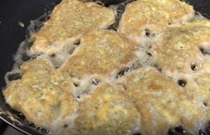 ※살이 잘 부서지는 경우 소금과 후추로 간을 한 후에 체반에 담아 물기를 조금 말린 후 부치면 잘 안부셔지고 맛도 좋다고 해요! 기름에 바로 부친 노릇노릇한 완성된 동태전 시식하기~