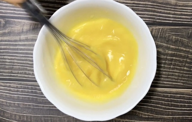 4. 부침가루를 묻힌 동태포에 달결물을 묻힌 후...