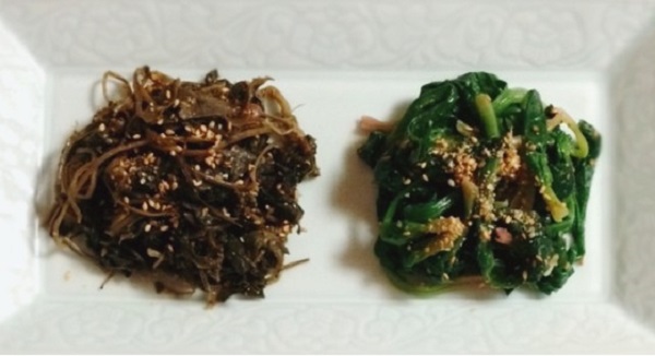 나물의 종류는 시금치나물, 고사리나물, 도라지나물, 숙주나물