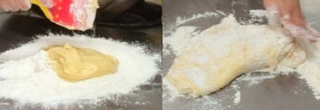 2, 체친 가루(박력분+B.P)를 넣고 매끄러운 반죽 되면